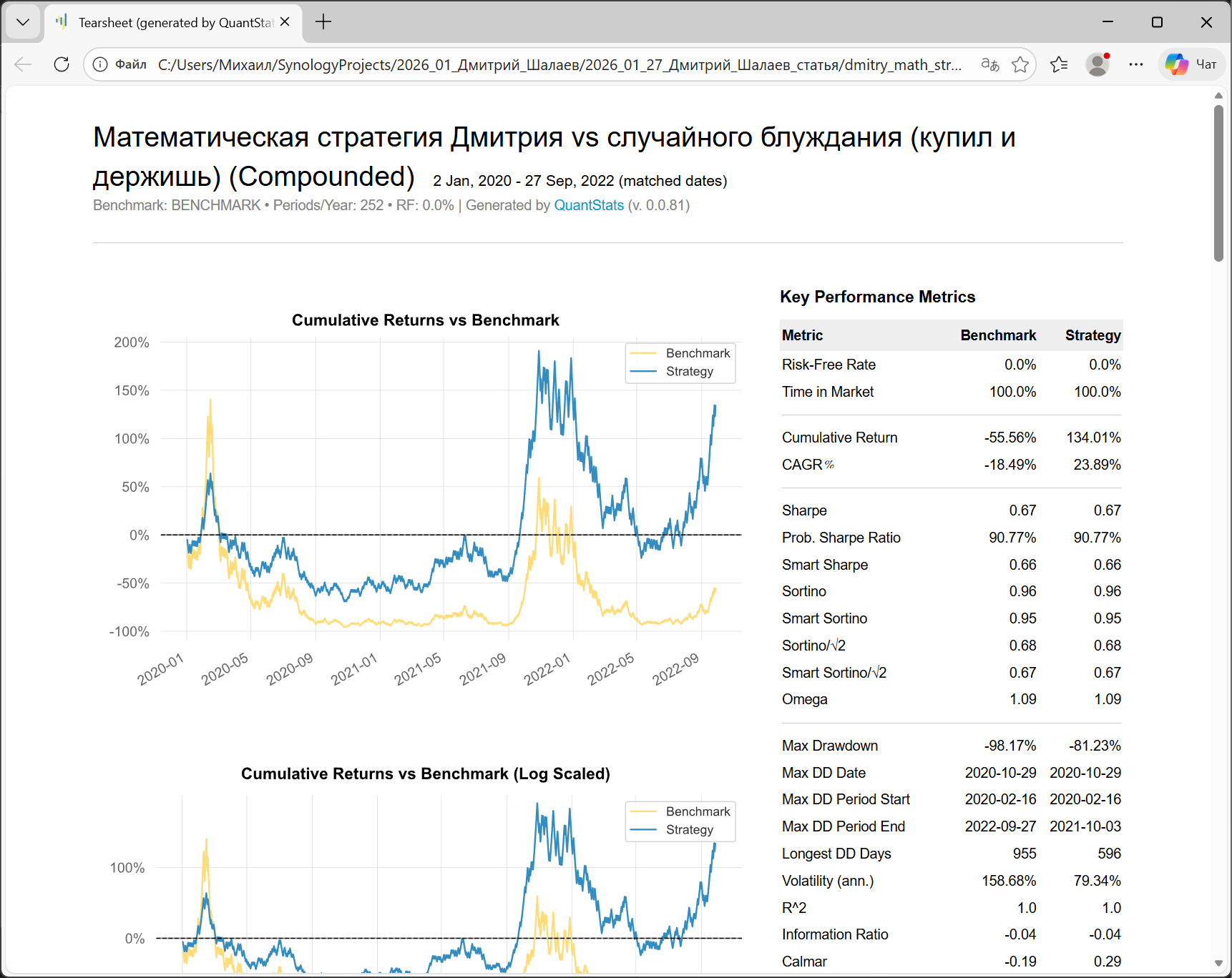 - Стратегия Дмитрия (квант, Strategy): капитал растет на том же самом падающем активе.