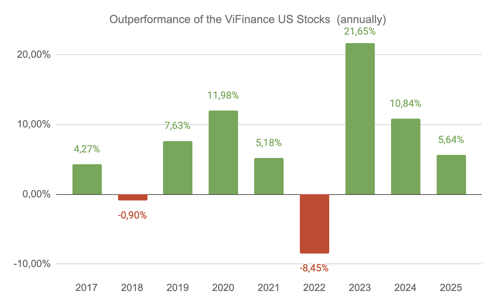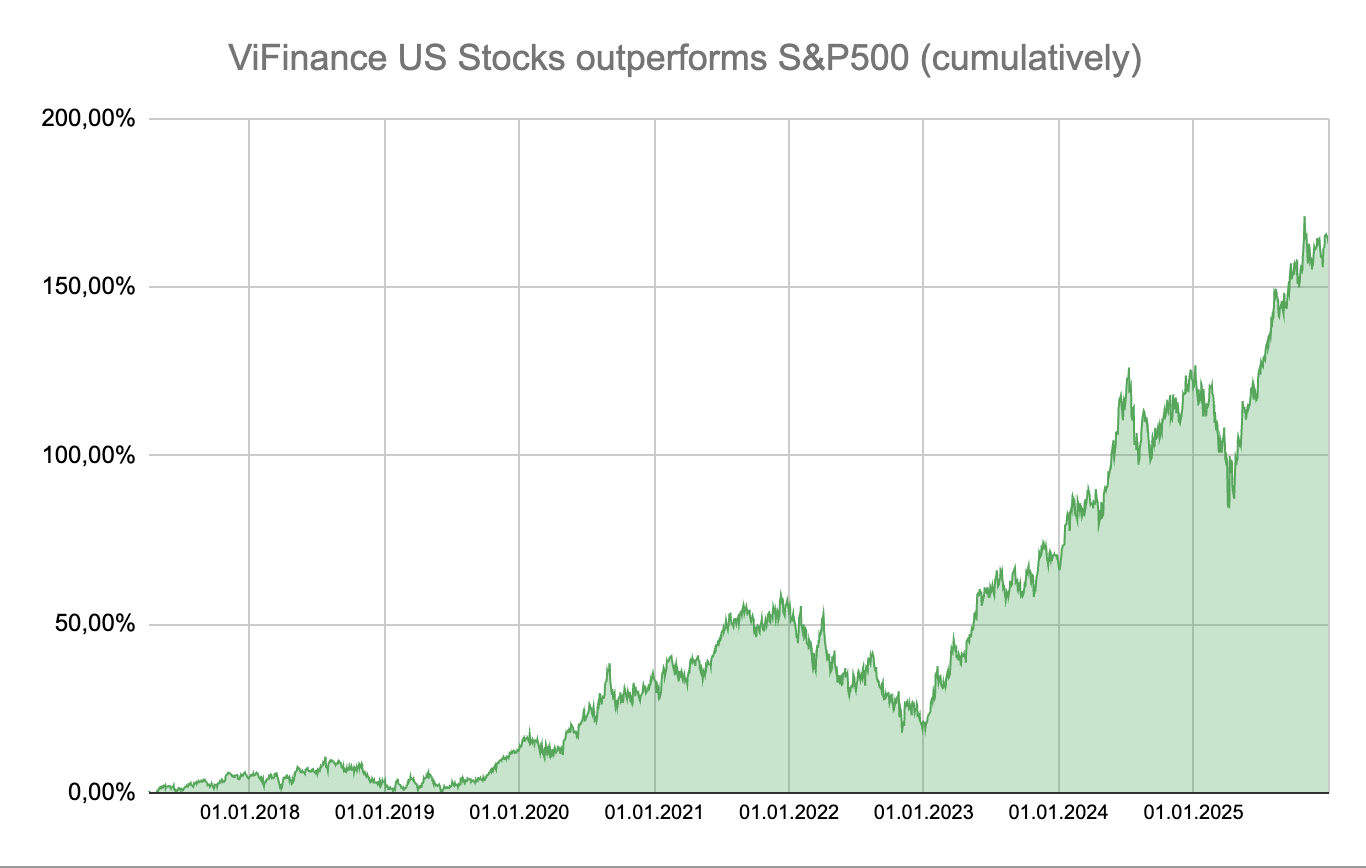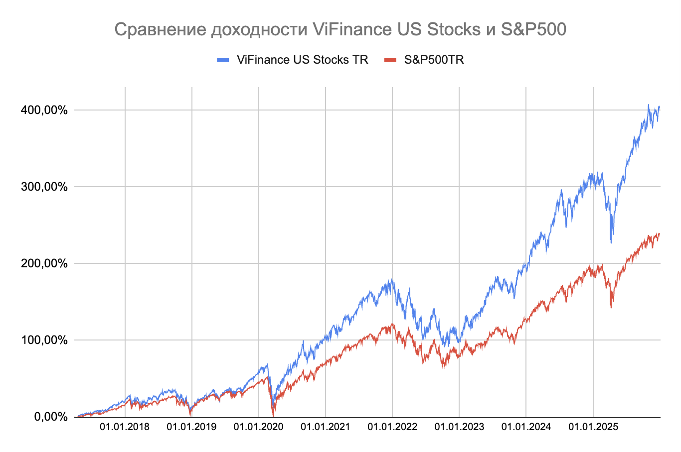 По данному скринеру индекс ViFinance US Stocks и портфель по нему — за 5 лет опередил 92,4% профессиональных фондов!